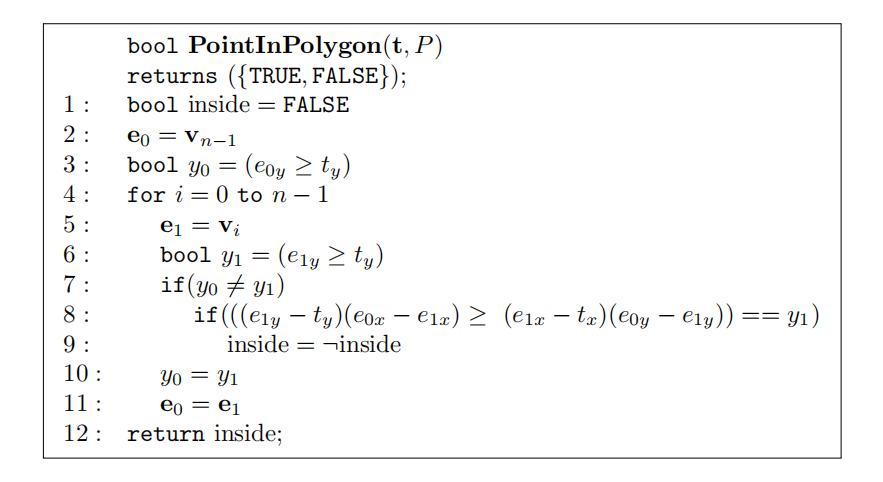 如果,那么这两条线是共线了。Antonio [61]注意到,和的分母实际上是相同的,并且由于和不是明确需要的,因此我们可以省略这个除法运算。定义和。为了测试是否满足,可以使用以下代码:
